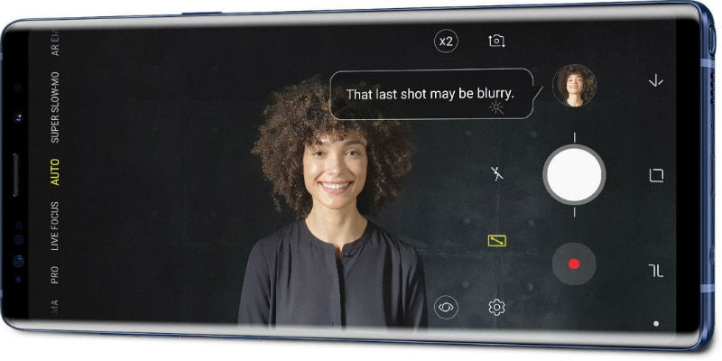 Another new feature is Scene Optimizer; which intelligently and automatically identifies and supplies the name or mode (Sky, Birds, Street scenes, Beaches) of the subject matter the camera is about to capture, then the Scene Optimizer proceed to give optimum colour settings that best suit the subject matter before you take the picture. In total, Note 9's Scene Optimizer are equipped with 20 modes.